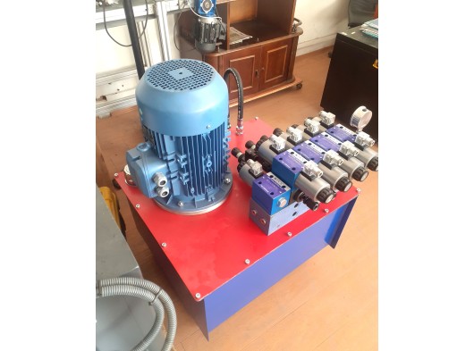 yerli üretim hidrolik santral 90 litre 7.5 kw motor 4 adet kontrol valfi entegre basınç denetimi her valf için ayrı ayrı 2 yöne hız ve basınç ayarı 90 litre / dakika eşenjör tip su soğutma .makine imalat atölyesinden ihtiyaç fazlası satılıktır.