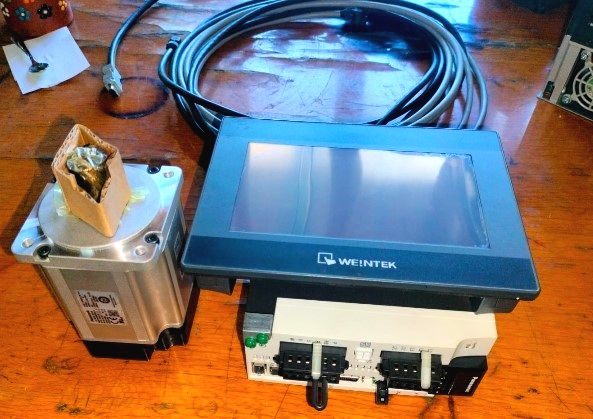 panasonic marka MCDLT35SF kod nolu A6 serisi 750 watt 0.75 kw 3000 d/d servo motor .panasonic marka MCDLT35 SF kod nolu driver, panasonic marka FP-XH C60TD kod nolu plc,panasonic marka FP-X E30R kod nolu yardımcı modül,WEİNTEK marka MT8071 kod nolu 7 inç ekran, LİMİNG marka 90 gövde 1/20 planet redüktör,5 metre haberleşme kablosu.5 metre enerji kablosu elimizde 3 takım mevcut olup set halindede verilir..makine imalat atölyesinden ihtiyaç fazlası satılıktır.elimizde çeşitli güç ve devirlerde hidrolik üniteler - indiksiyon ısıtma -motor - servo motor - step motor - redüktör - şanzıman - planet redüktör - driver - sürücü - inverter - hız kontrol - ekran - piensi -trafolar - güç kaynakları - valfler - pistonlar - aktüatörler - regületörler - şartlandırıcılar - PNÖMATİK DÖNER PİSTON yeni ürün kendi imalatımız. (parça.ürün. yada motor 360 derece sürekli dönerken hareket edebilen pistonlar ) - NOT:yeni yada ikinciel satıcısı değiliz.makine imalatçısıyız elimizdeki ürünlerin tamamı sınırlı sayıda ve yeni olup devir yada güç yetersizliğinden dolayı çok uygun fiyatlara satılıktır.